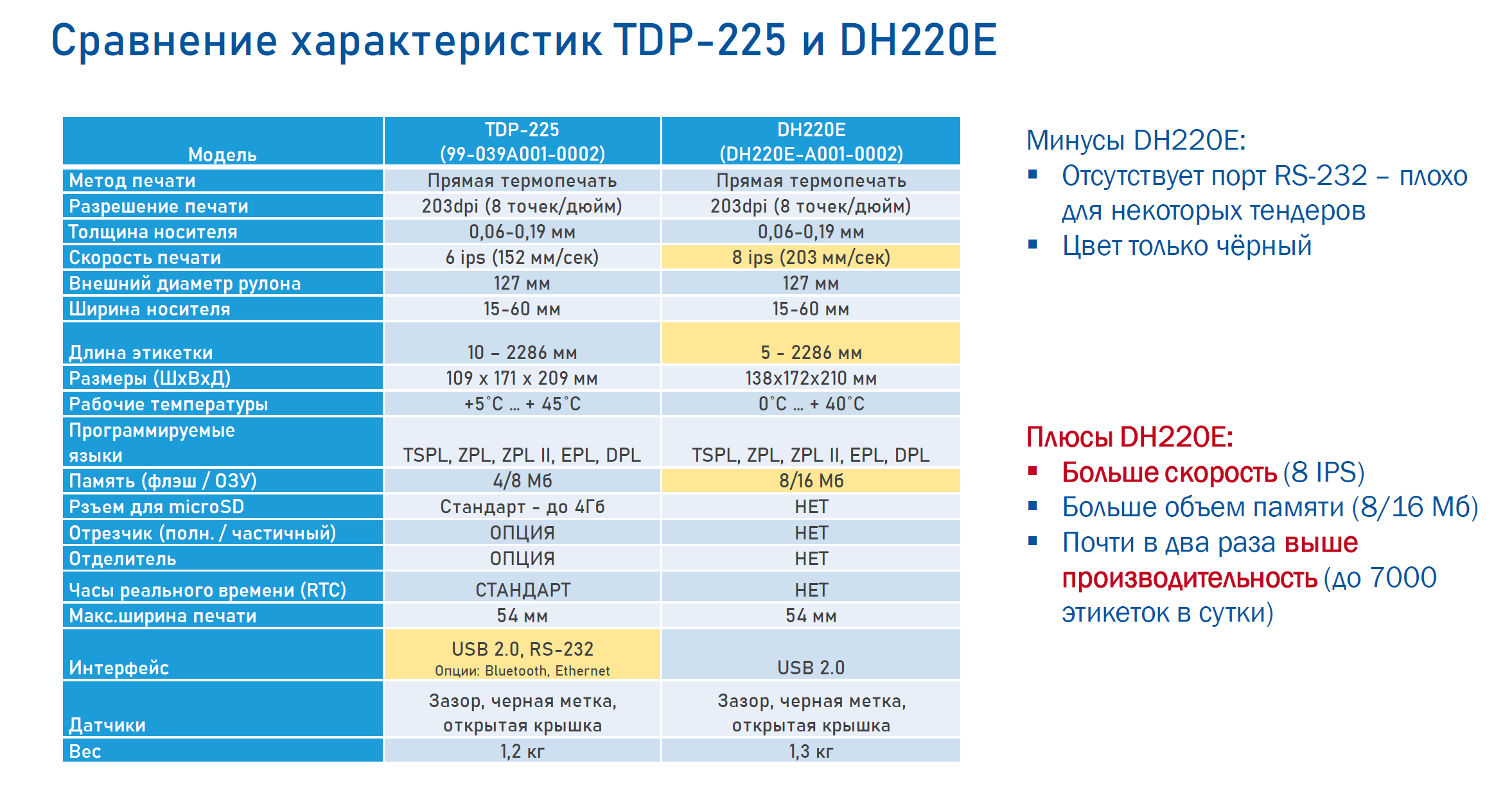 Встроенное программное обеспечение автоматически определяет основные языки управления принтера и сразу же начинает процесс печати без изменения шаблонов этикеток. Принтеры DH220E минимизирует время простоя принтера во время ежедневной работы благодаря универсальным средствам управления принтером.